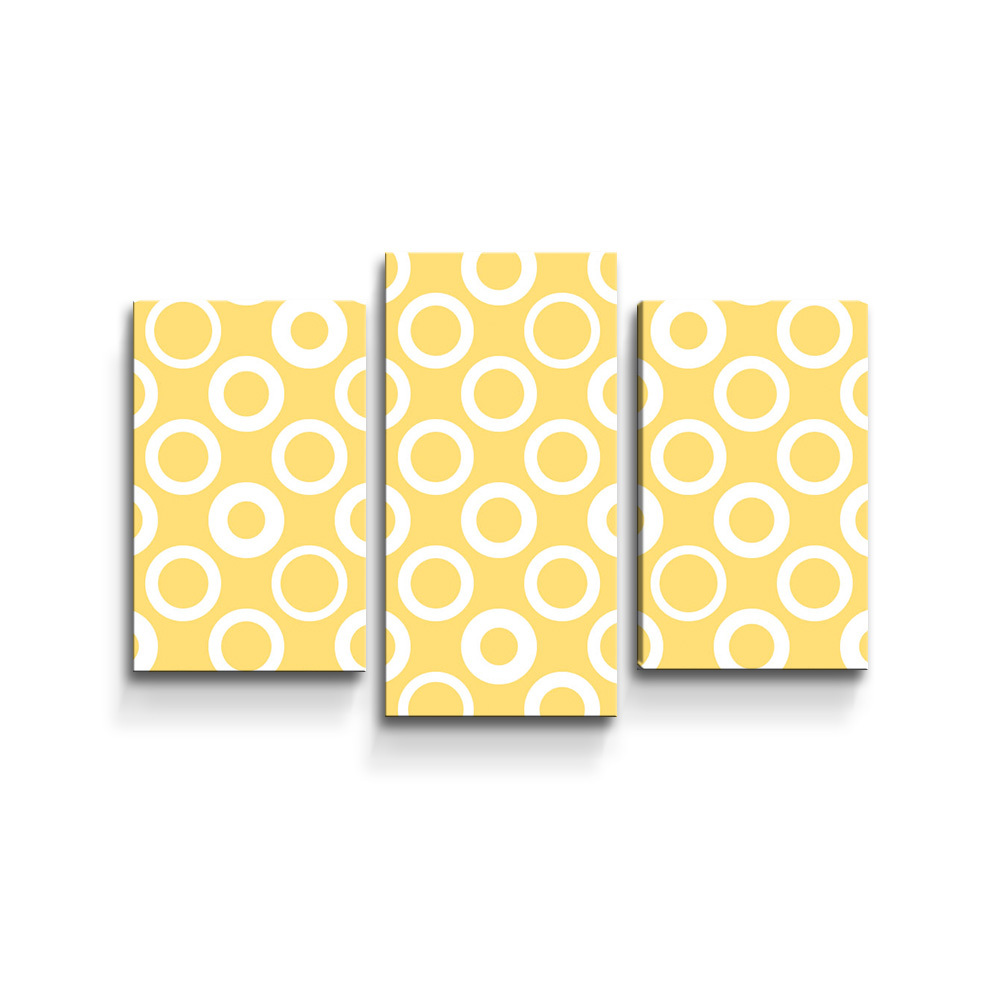 Obraz - 3-dílný Bílé kruhy na žluté: 75x50 cm