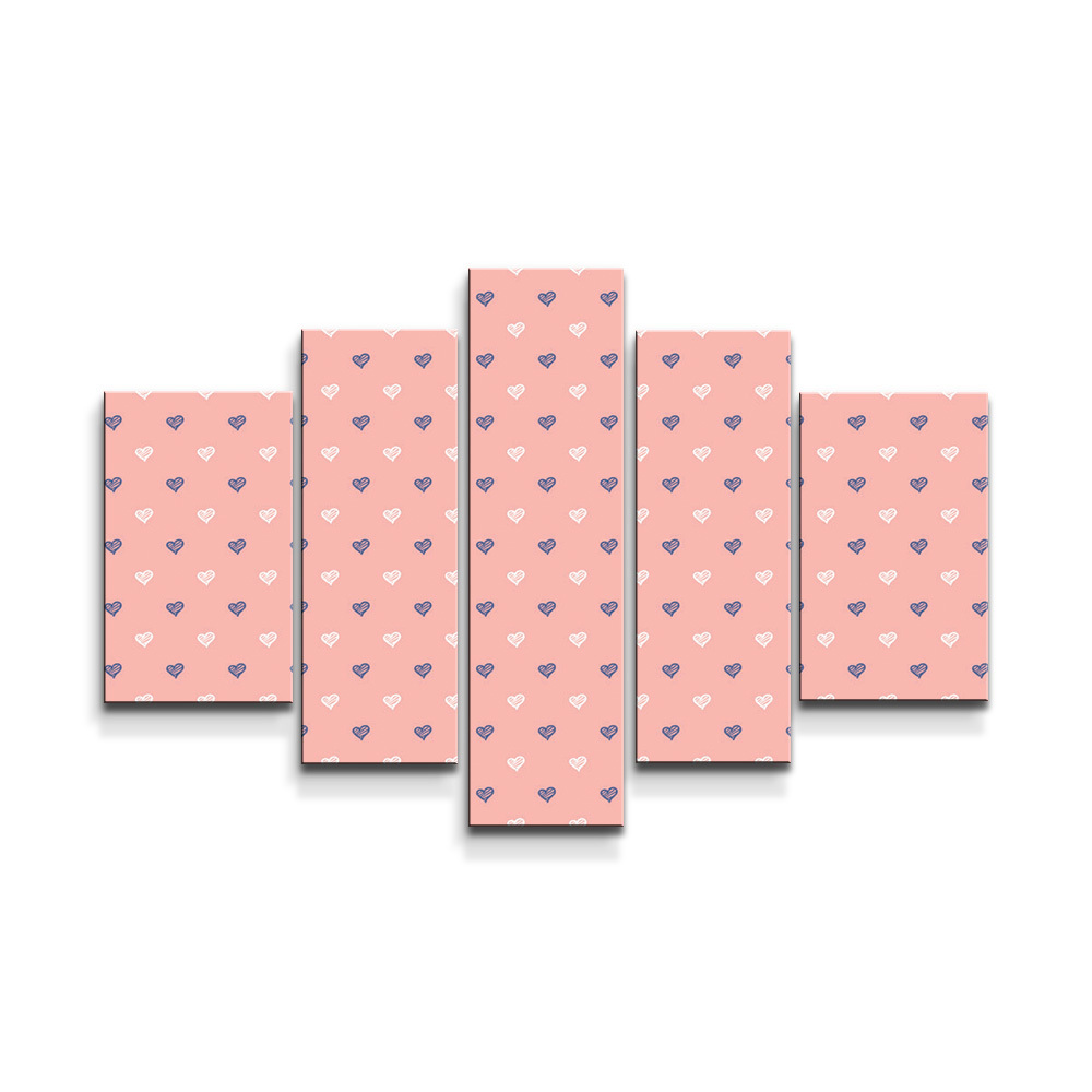 Obraz - 5-dílný Srdíčka na růžové: 125x90 cm