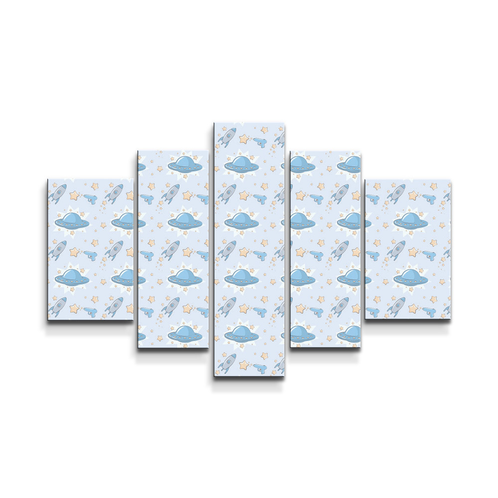 Obraz - 5-dílný Létající talíře a rakety: 125x90 cm