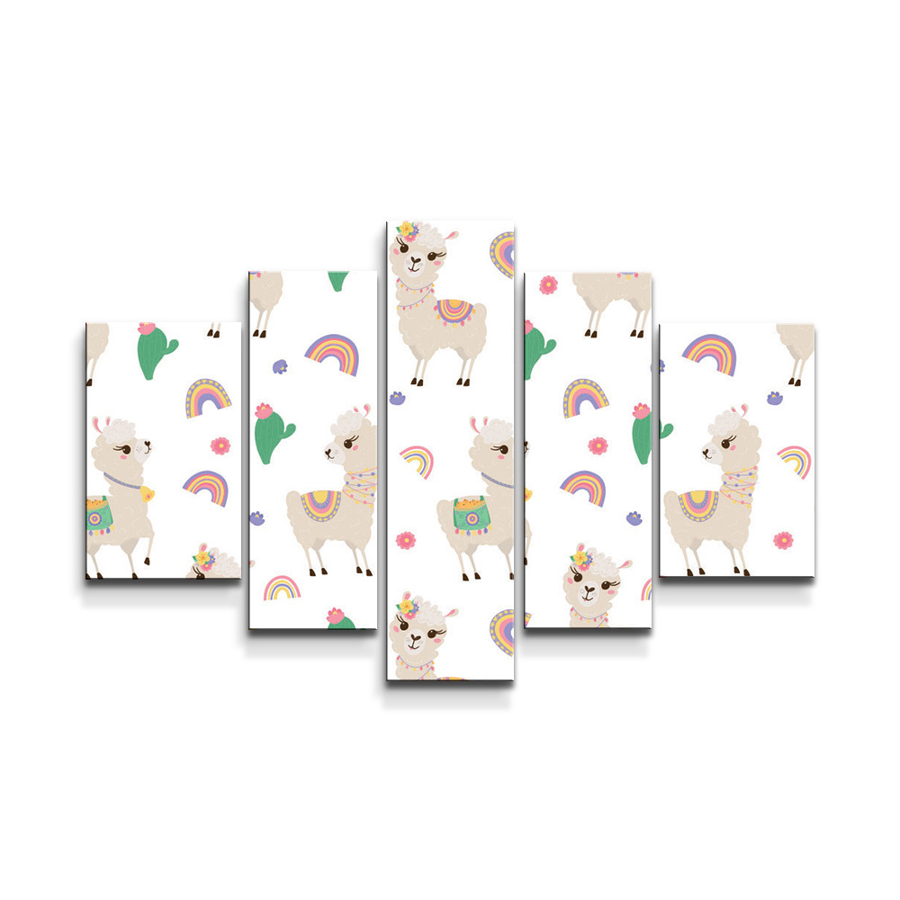 Obraz - 5-dílný Roztomilé lamy: 125x90 cm