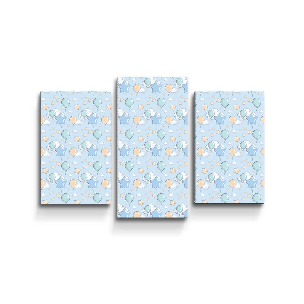 Obraz - 3-dílný Balónky a hvězdy: 75x50 cm