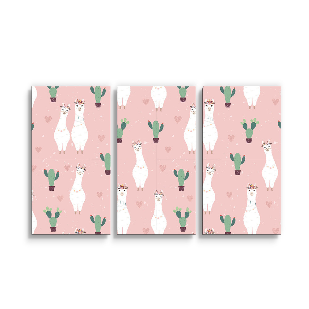 Obraz - 3-dílný Lama a kaktusy: 120x80 cm