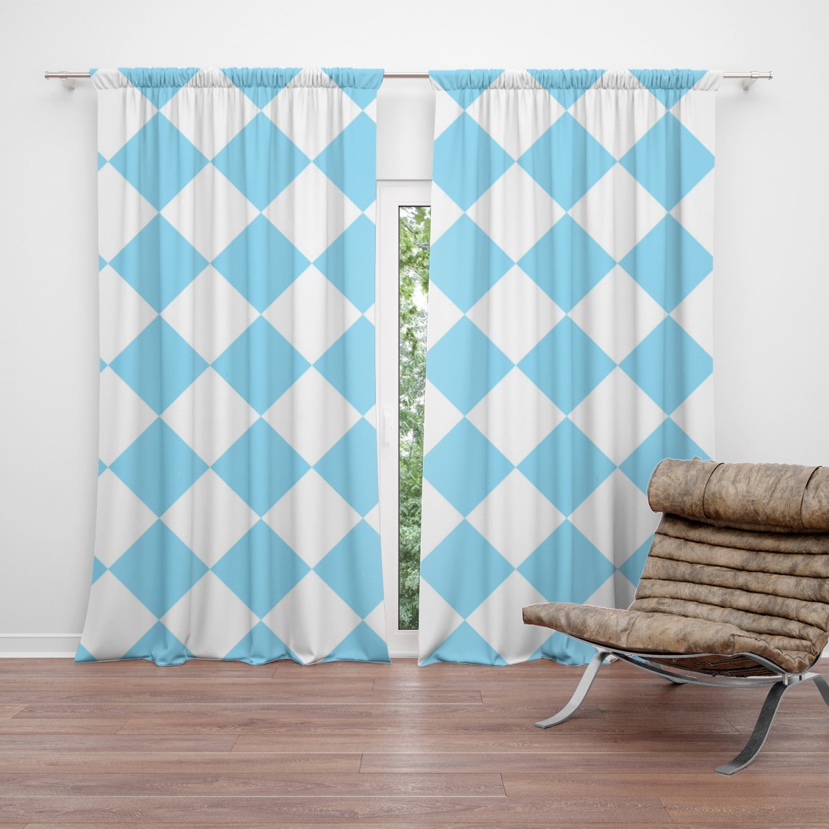 Závěs Bílomodré kosočtverce: 2ks 140x250cm