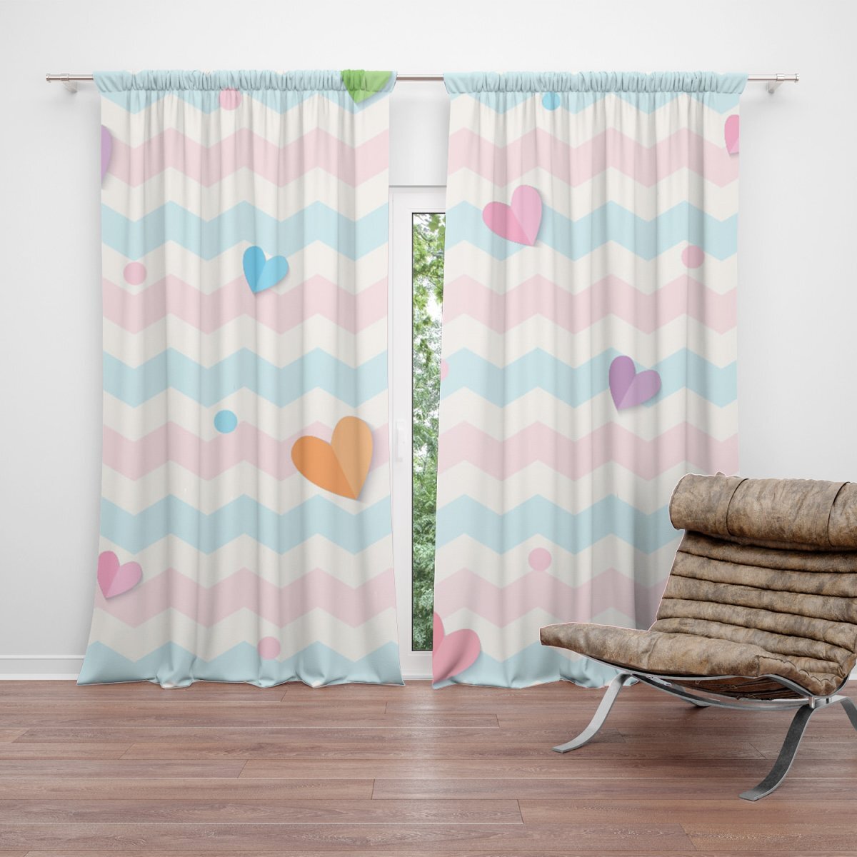 Závěs Barevná srdíčka: 2ks 140x250cm
