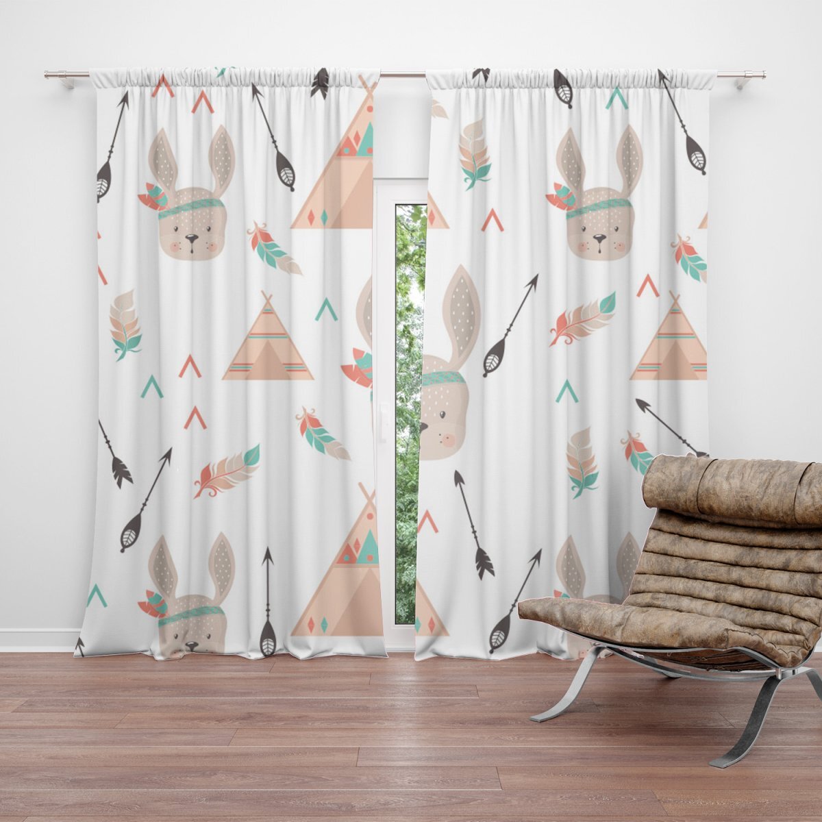 Závěs Zajíci u stanu: 2ks 140x250cm