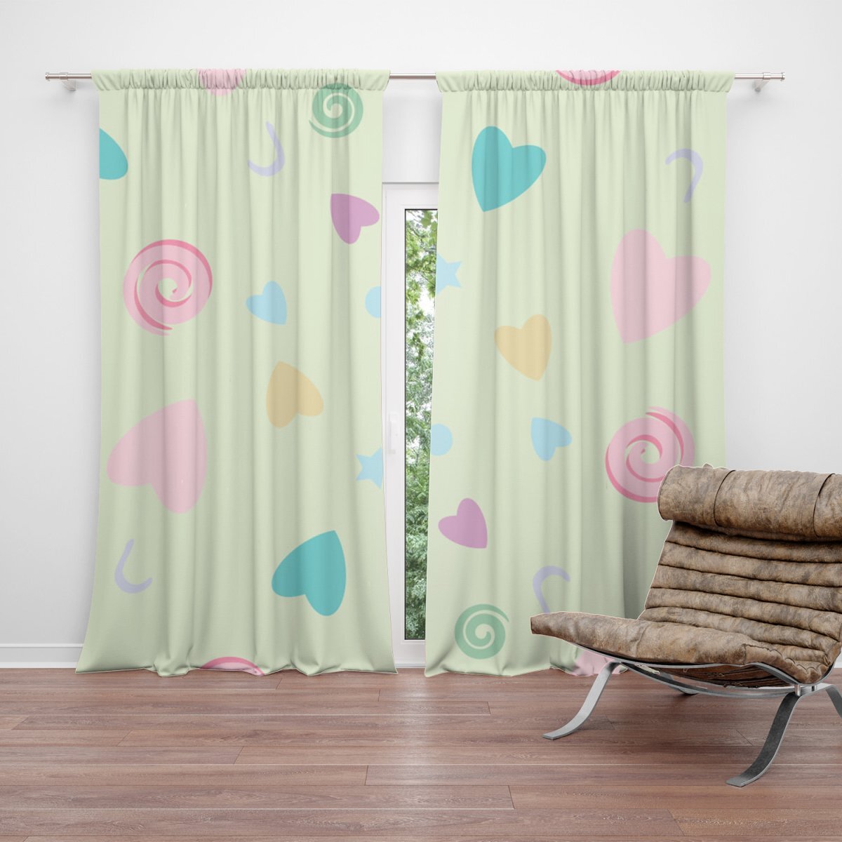 Závěs Srdíčka a spirály XL: 2ks 140x250cm