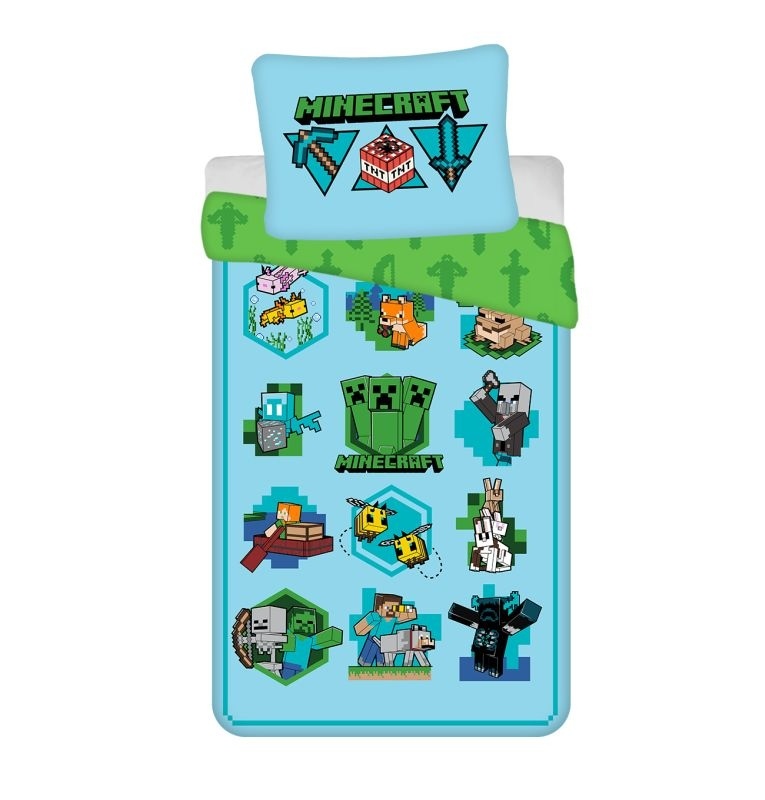 JERRY FABRICS Povlečení Minecraft Lets play je ideální volbou pro všechny malé i větší fanoušky této populární hry. Stylový design s motivy Minecraftu přináší do ložnice zábavu a originalitu, která potěší každého příznivce virtuálního světa.