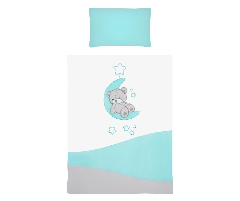 Krásná dětská bavlněná 3-dílná souprava do postýlky Belisima Teddy Bear pro miminka. Souprava je zdobena roztomilým medvídkem. Souprava je zdobena nápisem a obrázkem koruny. Je vyrobena z měkkého, příjemného materiálu. Obsahuje povlečení na polštářek cca 40x60 cm, povlečení na peřinku cca 100x135 cm a mantinel cca 180 cm. Materiál 100% bavlna.Tyto výrobky jsou bezpečné, protože:- přírodní bavlna nezpůsobuje odřeniny a podráždění, jelikož neobsahuje formaldehydy a další prvky, které kojencům škodí- neztrácí barvu a nezabarvuje oblečení- nabízené vzory jsou příjemné na pohled a mají uklidňující barvy- zipy používané u povlečení jsou tzv. "bezpečné zipy" bez volně visící koncovky, kterou by mohlo dítě utrhnout a spolknout- nejsou použity žádné knoflíky ani žádné další plastové nebo ocelové části, které mohou být pro Vaše dítě nebezpečné- materiál, který je používán pro výplně polštářů a přikrývek, je 100% protialergický, což znamená, že se v jeho vláknech nešíří žádné mikroorganismy ani plíseň