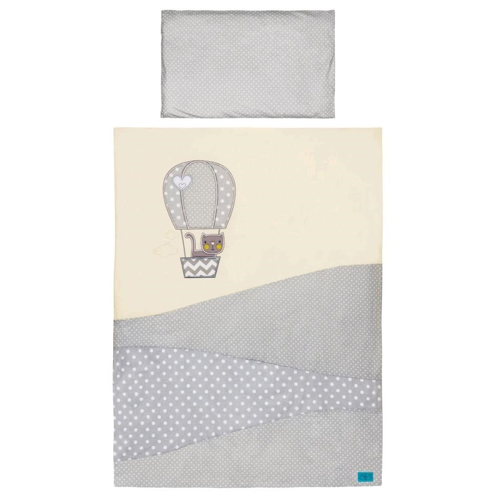 Bavlněná 5-dílná souprava do postýlky Belisima Balón pro miminka. Souprava je zdobená obrázkem létajícího balónu, kočičky a puntíků. Polštář je z jedné strany puntíkovaný, druhá strana je jednobarevná. Souprava obsahuje povlečení na polštářek cca 40x60 cm, povlečení na peřinku cca 100x135 cm, mantinel cca 31x175 cm, polštář a peřinku. Materiál 100% bavlna.