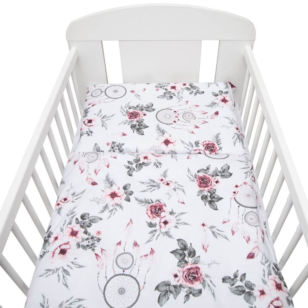 2-dílné ložní povlečení New Baby 90/120 cm bílé květy a pírka