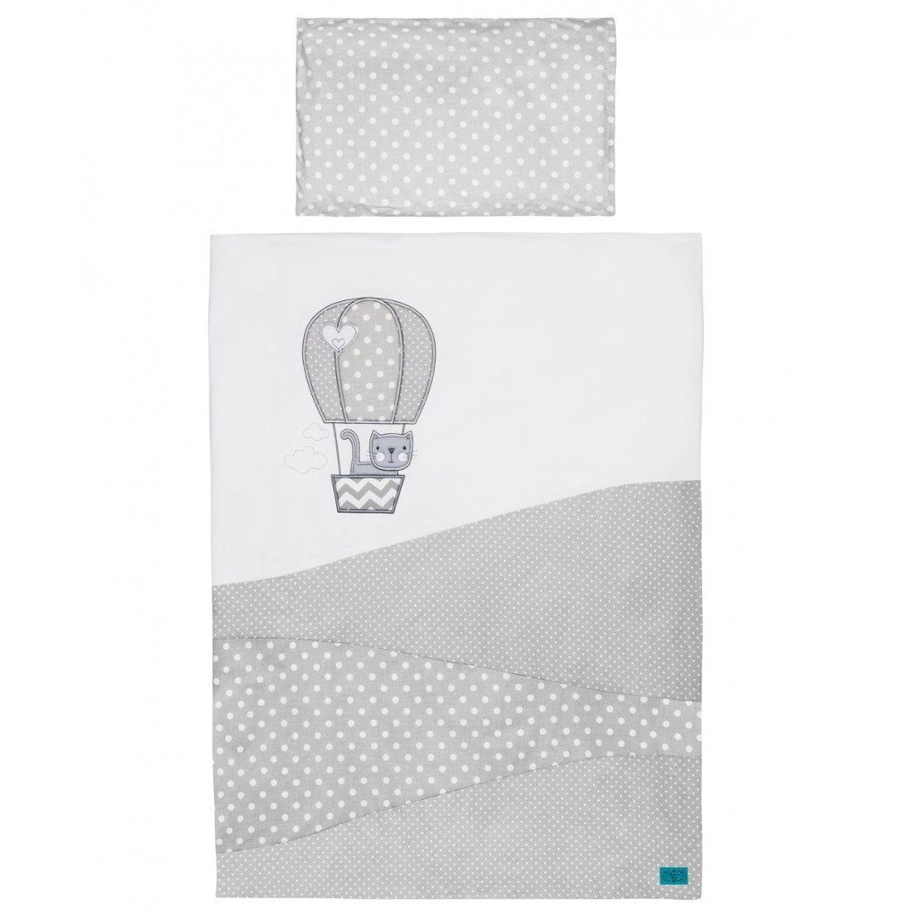 Bavlněná 2-dílná souprava do postýlky Belisima Balón pro miminka. Souprava je zdobená obrázkem létajícího balónu, kočičky a puntíků. Polštář je z jedné strany puntíkovaný, druhá strana je jednobarevná. Souprava obsahuje povlečení na polštářek cca 40x60 cm a povlečení na peřinku cca 90x120 cm....