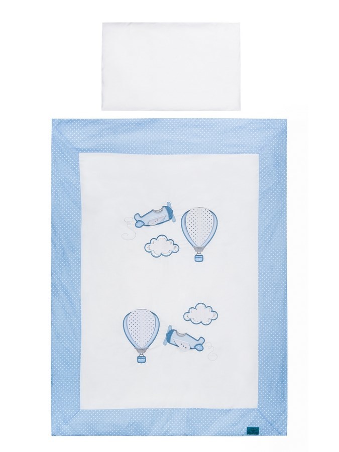 Dětská bavlněná 3-dílná souprava do postýlky Belisima Letadla pro miminka. Soupravu zdobí puntíky, 3D obrázek letadla, obrázek balónu a příjemné barvy. Je vyrobena z měkkého, příjemného materiálu. Polštář je jednobarevný. Souprava obsahuje povlečení na polštářek cca 40x60 cm, povlečení na peřinku cca 100x135 cm a mantinel cca 180 cm. Materiál 100% bavlna.Tyto výrobky jsou bezpečné, protože:- přírodní bavlna nezpůsobuje odřeniny a podráždění, jelikož neobsahuje formaldehydy a další prvky, které kojencům škodí- neztrácí barvu a nezabarvuje oblečení- nabízené vzory jsou příjemné na pohled a mají uklidňující barvy- zipy používané u povlečení jsou tzv. "bezpečné zipy" bez volně visící koncovky, kterou by mohlo dítě utrhnout a spolknout- nejsou použity žádné knoflíky ani žádné další plastové nebo ocelové části, které mohou být pro Vaše dítě nebezpečné- materiál, který je používán pro výplně polštářů a přikrývek, je 100% protialergický, což znamená, že se v jeho vláknech nešíří žádné mikroorganismy ani plíseň.