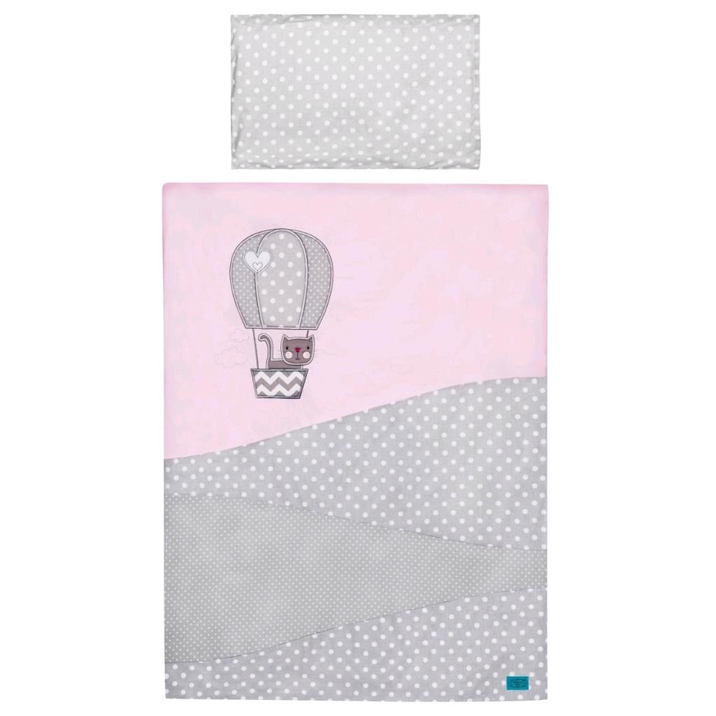 Bavlněná 5-dílná souprava do postýlky Belisima Balón pro miminka. Souprava je zdobená obrázkem létajícího balónu, kočičky a puntíků. Polštář je z jedné strany puntíkovaný, druhá strana je jednobarevná. Souprava obsahuje povlečení na polštářek cca 40x60 cm, povlečení na peřinku cca 90x120 cm, mantinel cca 31x175 cm, polštář a peřinku. Materiál 100% bavlna.