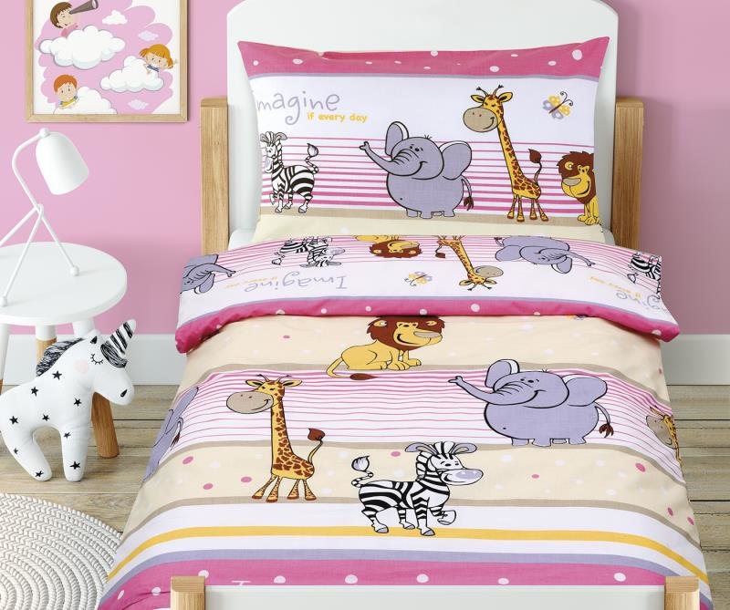 Dětské povlečení bavlna Beáta - safari růžové - 100x135,45x60 cm