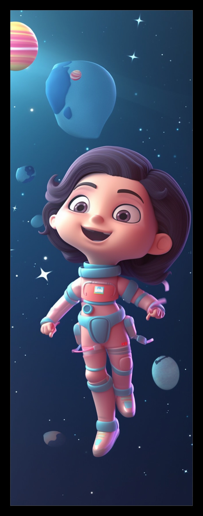 Záložka zobrazuje roztomilou postavu Astronautky s úsměvem, jak létá ve vesmíru obklopena hvězdami, planetami a dalšími vesmírnými objektmi. Tento motiv povzbuzuje děti, aby snily o dobrodružstvích ve vesmíru a inspiroval je k objevování, přesahujícím hranice naší planety. Astronauti totiž hrají důležitou roli - zkoumají vesmír a odhalují nové tajemství, které nám pomáhají lépe porozumět vesmíru kolem nás.