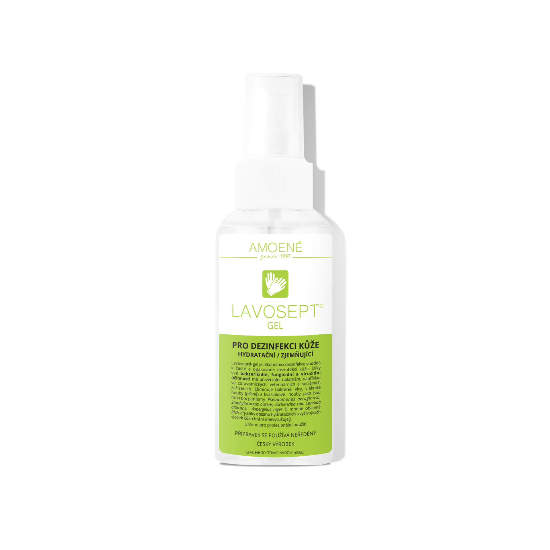 Gelová forma alkoholového dezinfekčního přípravku pro hygienickou dezinfekci kůže. Lavosept je alkoholový dezinfekční přípravek ve formě čirého gelu, který obsahuje i zjemňující a hydratační přísady, které zabraňují vysoušení a podráždění pokožky.