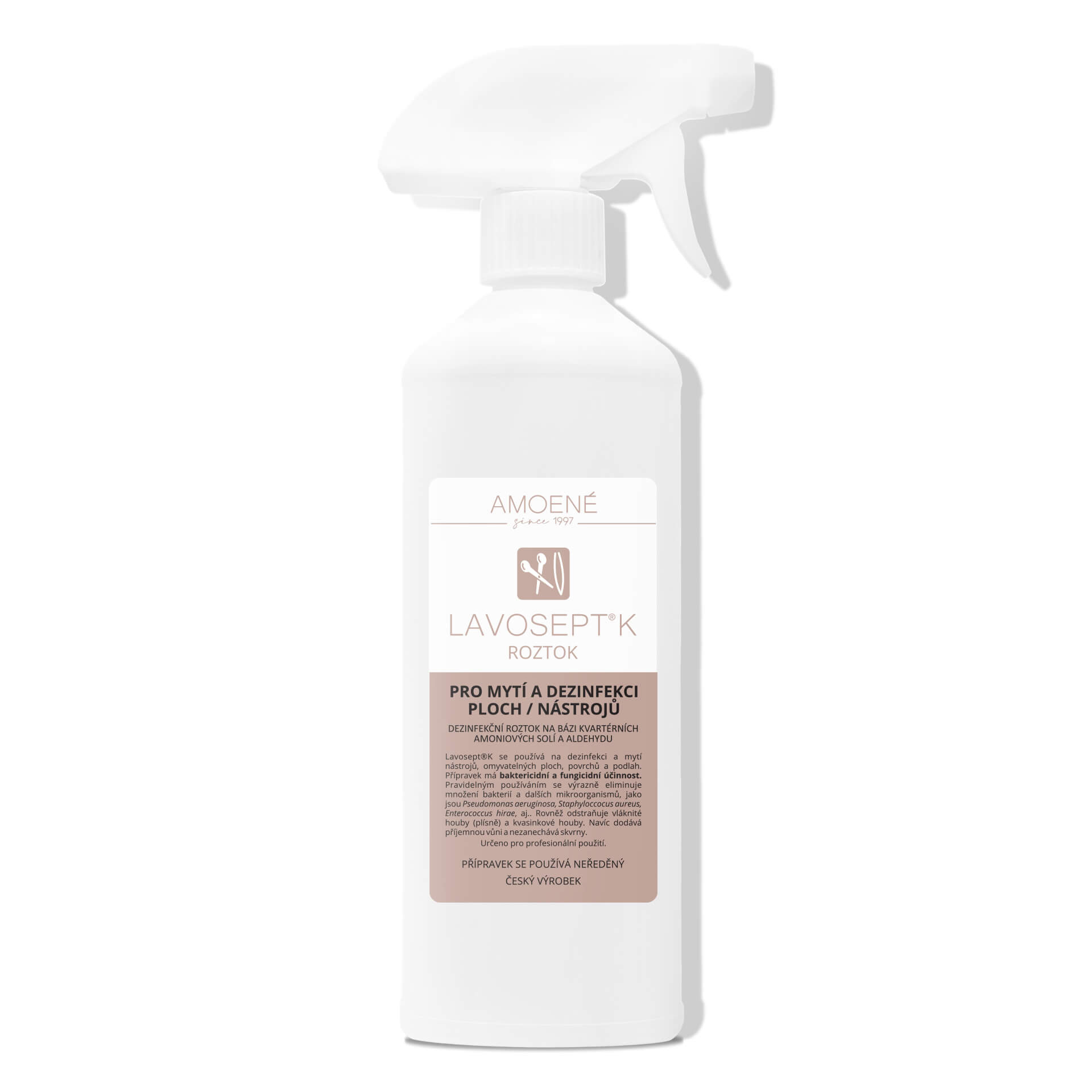 LAVOSEPT® K je dezinfekční přípravek na bázi kvartérních amoniových solí a aldehydů ve formě rozředěného koncentrátu určené k okamžité aplikaci pro dezinfekci ploch a nástrojů. Lavosept K se používá na dezinfekci a mytí všech omyvatelných ploch a povrchů a dále k dezinfekci nástrojů ponorem, zejména v sociální a zdravotnické sféře, službách, pedikérských a manikérských salonech, kadeřnictví, kosmetikách, welness a fitness centrech, kde výrazně snižuje počet bakterií. Odstraňuje kromě jiného mikroskopické vláknité houby - plísně, mikroskopické kvasinkové houby - kvasinky a dále mikroorganizmy Pseudomonas aeruginosa, Staphyloccocus aureus, Enterococcus hirae, aj. Mimo to nezanechává skvrny.