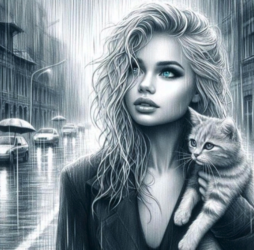 Diamantový obrázek modrooká dívka s kočkou 30 x 40 cm