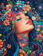Diamantový obrázek portrét dívky s květinami - abstrakce 30 x 40 cm