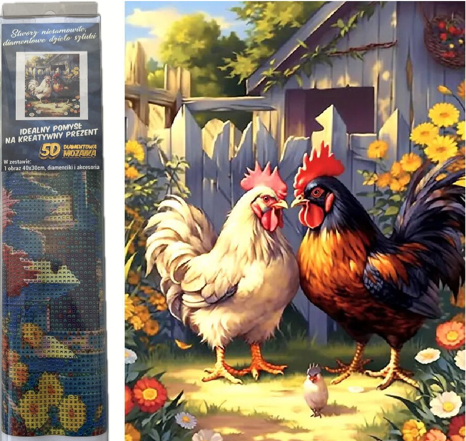 Diamantový obrázek - Kohouti 30 x 40 cm