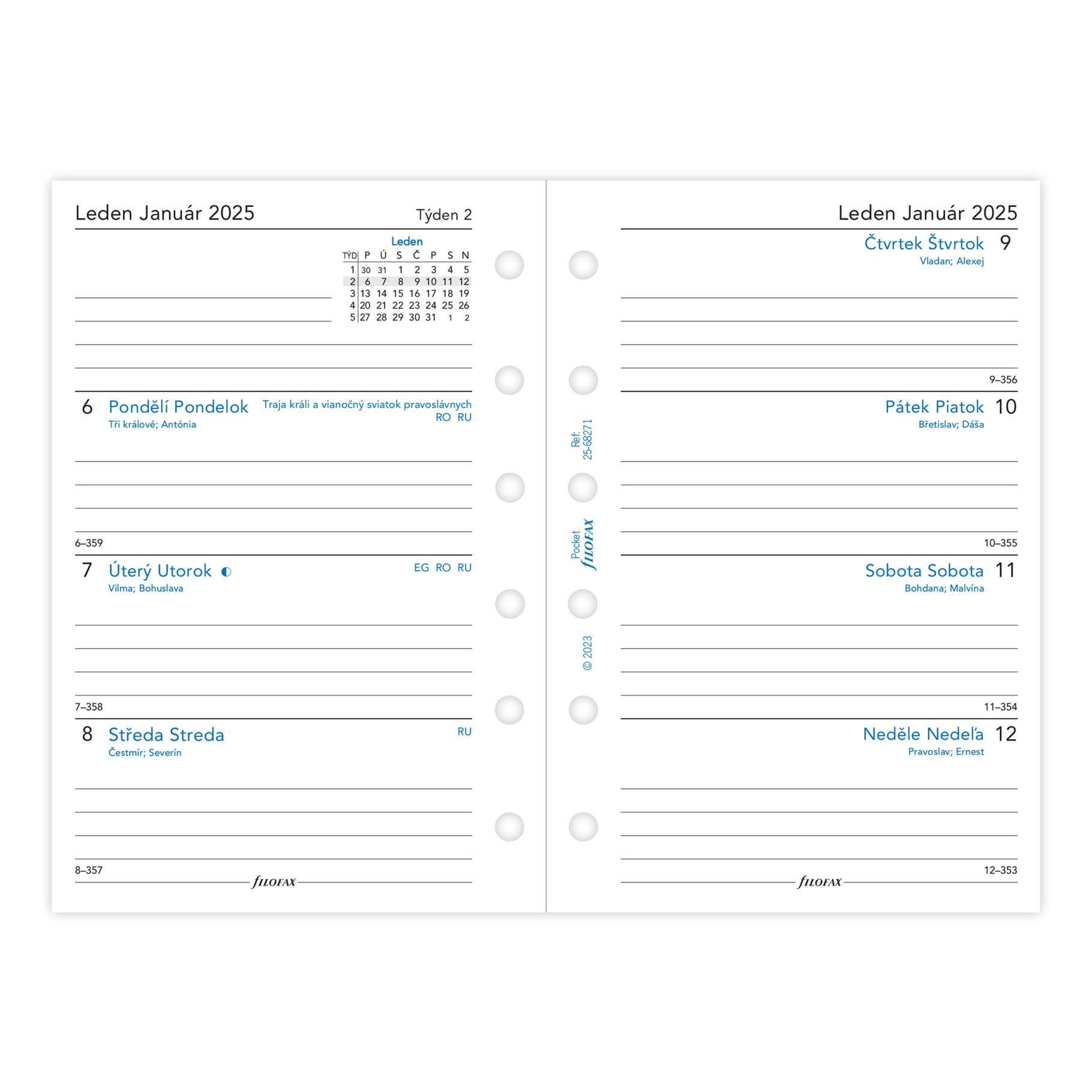 Filofax, Kalendář 2025 kapesní, týden/2 strany, linky, ČJ + SJ