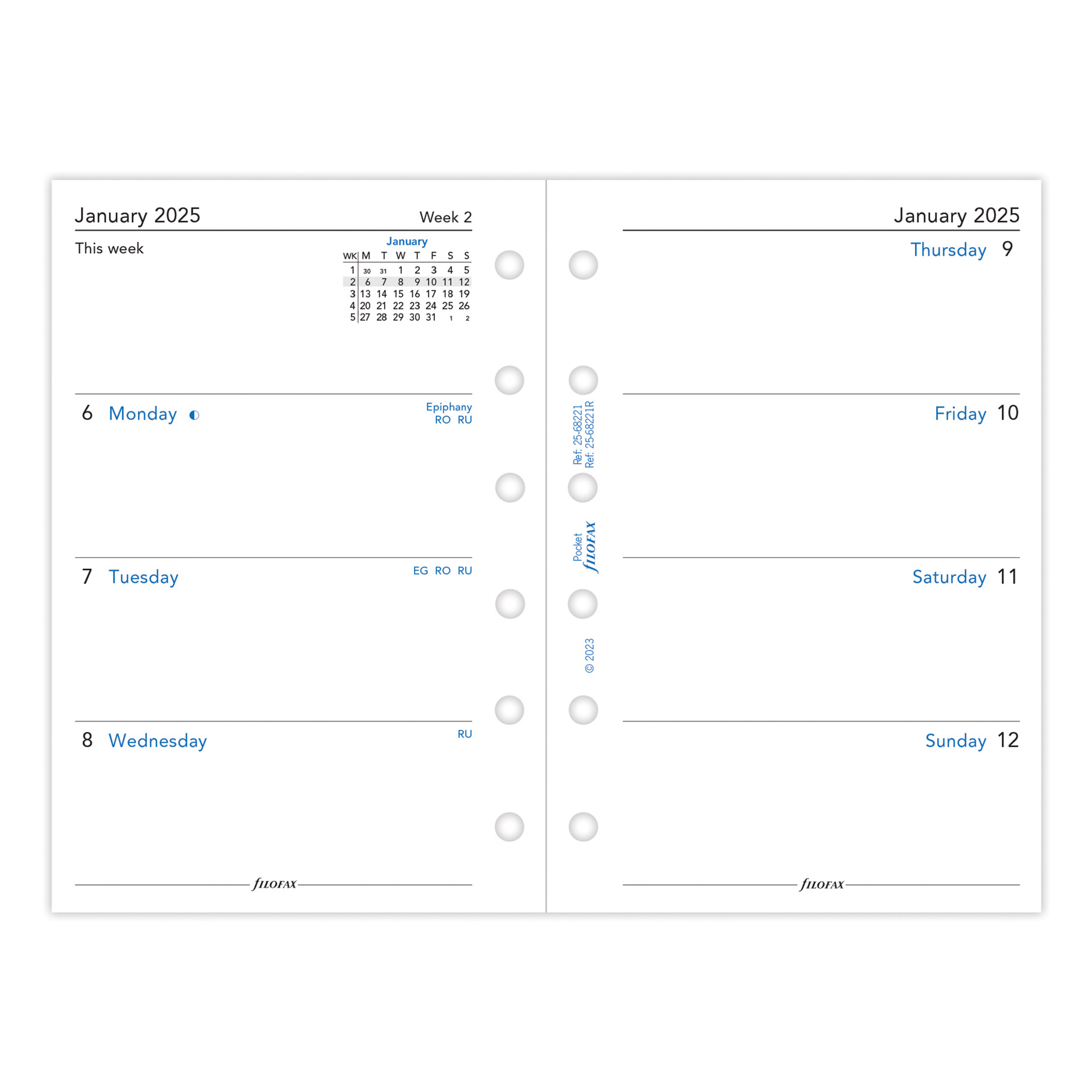 Filofax, Kalendář 2025 kapesní, týden/2 strany, AJ