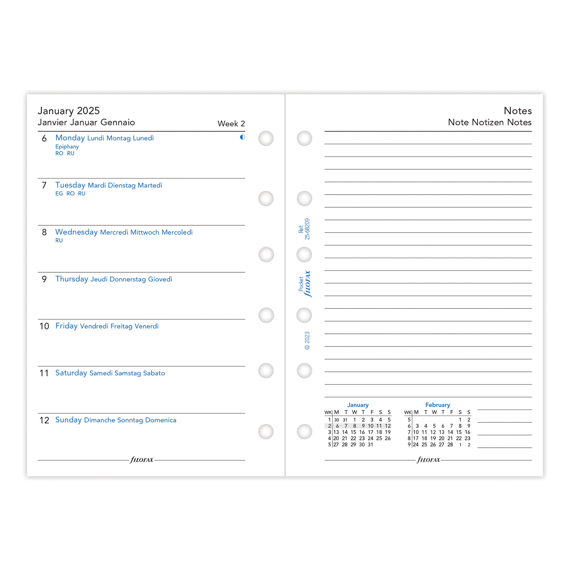 Filofax, Kalendář 2025 kapesní, týden/1 strana, pozn, 4 jazyky