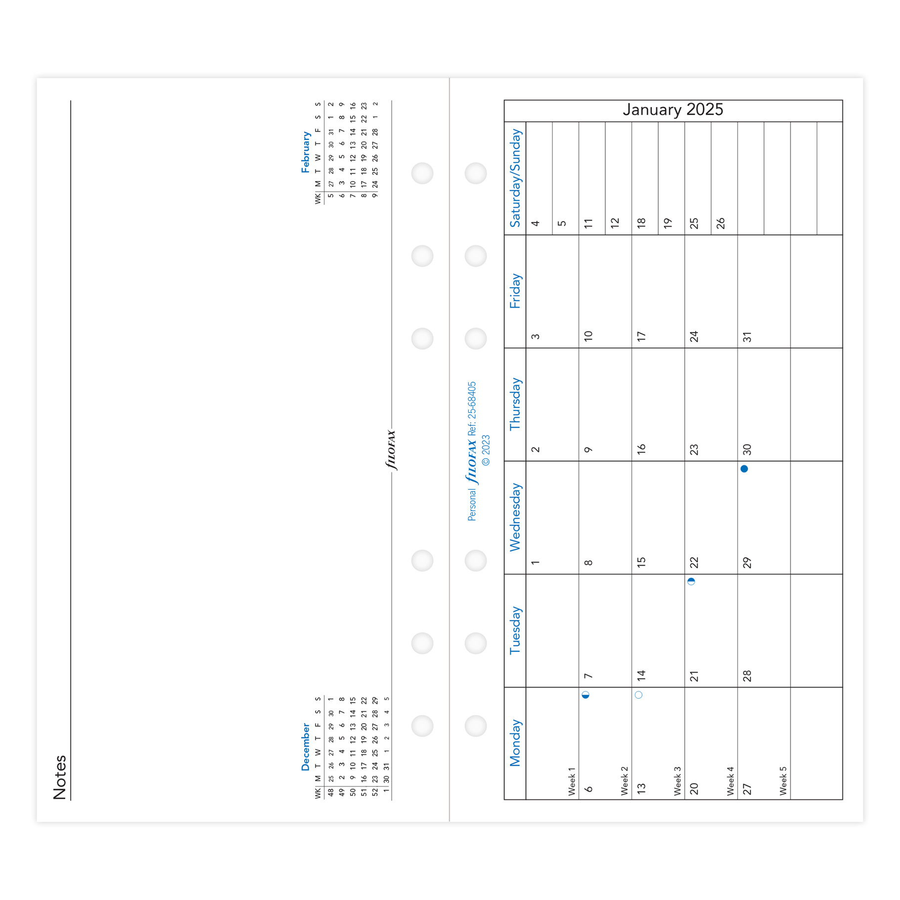 Filofax, Kalendář 2025 osobní, měsíc/1 strana, horizontální, AJ