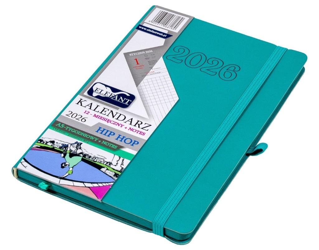 Kalendarz 2026 A5 12M + notes Hip hop turkusowy