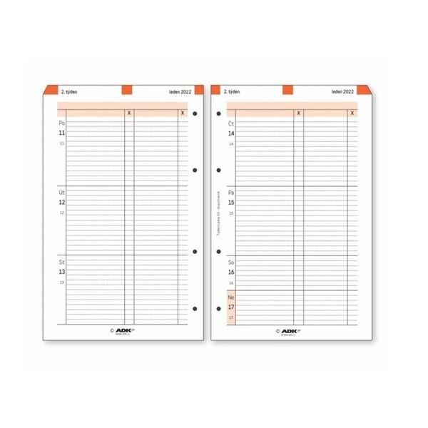 Termínovaný formulář pro týdenní plánování dvoustranný do diářů ADK formátu A5;Celý týden na jeden pohled;Levá strana od mechaniky: pondělí - středa;Pravá strana od mechaniky: čtvrtek - neděle;Rozměry: 21 x 13 cm