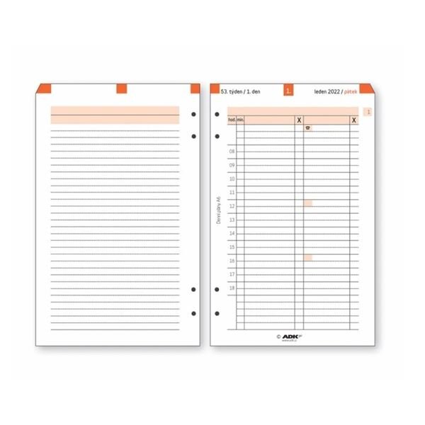 Termínovaný formulář pro denní plánování do diářů ADK formátu A6;