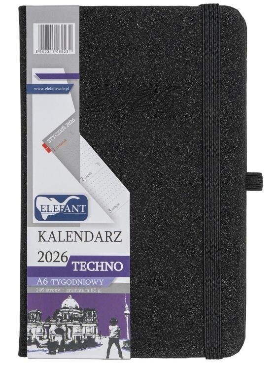 Kalendarz 2026 A6 tygodniowy Techno czarny