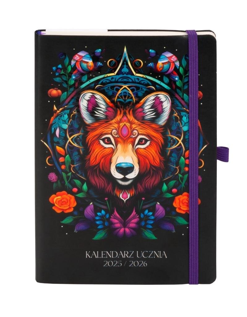 Wnętrze: tydzień na stronie Liczba stron: 180, Gramatura papieru: 80 g/cm2,Papier: chamois,Okładka: twarda, Pionowa gumka zamykająca,Zakres dat:wrzesień 2025 sierpień 2026, Dodatki szkolne:, Plan zajęć, Tabela ocen, Prace domowe, Sprawdziany, Zebrania z rodzicami,Wycieczki, Zajęcia pozalekcyjne,...