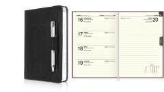 - Format A5 (140x207x22 mm) - Ilość stron: 460 - Dostępne kolory: czarny, granatowy, bordo, zielony, brąz - Oprawa: twarda skóropodobna + gąbka - Perforowane i zaokrąglone rogi - Gumka z wkładką na długopis - Układ środka: rozszerzon tydzień (pon-czw na jednej stronie. Pt, sb, nd na osobnych stronach. - Wewnątrz tasiemka do oznaczania stron ułatwia odnajdywanie ważnych notatek lub ostatnio zapisanej strony - Papier: 70 g/m2 w kolorze ecru - Kalendarium: w języku polskim, angielskim, numeracja dni i tygodni, podwójne imieniny - Część informacyjna: strony na notatki, telefony kierunkowe, skorowidz alfabetyczny, daty imienin i Świąt. - Kalendarz skierowany dla osób z branży gastronomicznej oraz eventowej. Zaprezentuj swój profesjonalizm z naszym nowoczesnym i funkcjonalnym Kalendarzem Dwuletnim A5 na lata 2026-2027, zaprojektowanym z myślą o osobach z branży eventowej i gastronomicznej. Ten wyjątkowy terminarz to połączenie stylu i praktyczności, idealny dla tych, którzy potrzebują więcej miejsca na planowanie intensywnych weekendów. Rozszerzony układ tygodniowy odpowiada realnym potrzebom pracy w branżach, gdzie sobota i niedziela są dniami najbardziej aktywnymi: od poniedziałku do czwartku dni znajdują się na jednej stronie, natomiast piątek, sobota i niedziela mają swoje osobne strony, zapewniając więcej przestrzeni na zapiski, rezerwacje i szczegóły wydarzeń. Format A5 i solidna, skóropodobna twarda okładka zapewniają wygodę i trwałość, a gumka z uchwytem na długopis pozwala mieć wszystko, czego potrzebujesz, zawsze pod ręką. Dzięki temu kalendarz staje się nie tylko narzędziem do planowania, ale też nieodzownym elementem codziennej pracy. Perforowane narożniki umożliwiają szybkie odnalezienie bieżącej daty. Wewnątrz znajdziesz również tasiemkę do zaznaczania stron oraz strony dodatkowe na notatki, telefony kierunkowe, skorowidz alfabetyczny, imieniny i święta. Kalendarium w języku polskim, angielskim i ukraińskim zawiera numerację dni i tygodni oraz podwójne imieniny. Przejrzysty układ i wystarczająca przestrzeń na notatki zapewniają efektywne zarządzanie czasem - nawet w najbardziej zapracowanych sezonach. Dostępny w 5 eleganckich kolorach: czarnym, granatowym, zielonym, brązowym i czerwonym.
