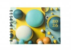 blok: 204x150 mm, 112 stron, papier 64 g/m2 biały, druk 1 kolor, terminarz na spirali