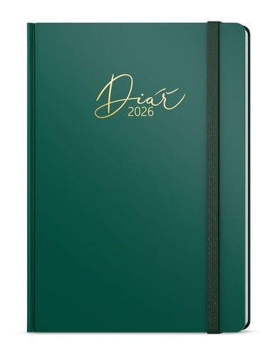 - Design: zelený s efektní zlatou ražbou roku 2026