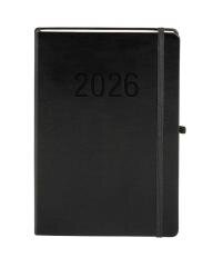 Kolekcja: Memofix,Format: B5 Wymiary okładki: 251x176 mm, Układ: tydzień do wglądu, Ilość stron: 128 ,Oprawa: twarda, Materiał: skóra ekologiczna, Gramatura papieru: 80g, Kolor papieru: off white, Dodatki: plan roku 2026, ważne wydarzenia,skorowidz adresowy, notatki, Pionowa gumka zamykająca: w kolorze okładki, Wstążka: w kolorze okładki , Gumka na długopis: w kolorze okładki, Zaokrąglone rogi: tak, Wyklejka: kremowa Koperta: tak