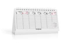 "Kalendarz biurkowy typu namiot, kalendarium w układzie miesięcznym, 54 strony + okładka. Na spirali, papier w środku kreda mat. Wymiary 250x110 mm" číst celé