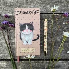 Kieszonkowy terminarz Charismatic Cats na rok 2026. Dzięki niemu nie zapomnisz o żadnym spotkaniu przez cały rok (tygodniowy układ - jeden tydzień znajduje się na 2 stronach). Ten pięknie ilustrowany koci terminarz przypomni Ci również o ważnych datach oraz pomoże zrobić potrzebne notatki. Idealny rozmiar, który zmieści się w torebce lub plecaku. Kalendarz jest w twardej oprawie.