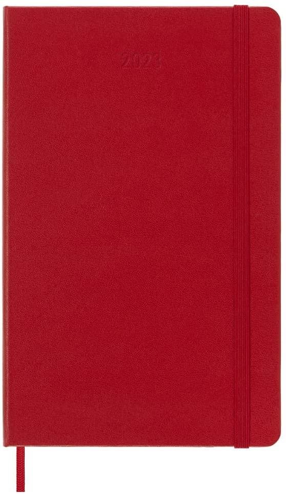 Klasický velký červený denní diář na rok 2023. Na každý den stránka pro poznámky a schůzky. Diář má pevnou, ve hřbetu šitou vazbu v kartonových deskách. Obepíná ho pružná páska proti samovolnému otevírání. Obsahuje praktickou vnitřní kapsu na vizitky a dokumenty, textilní záložku a 295 barevných samolepek. Papír s gramáží 70 g/m2 neobsahuje kyseliny.