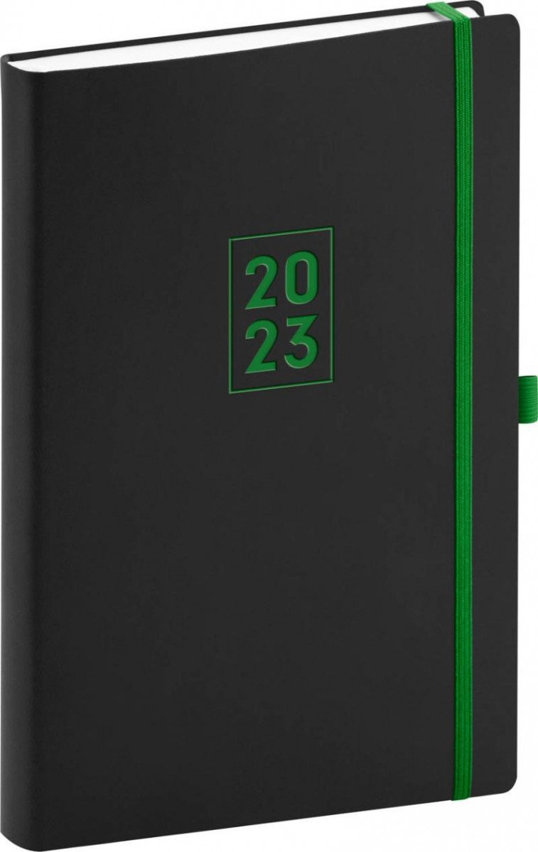 Diář 2023: Nox - černý/zelený, denní, 15 × 21 cm