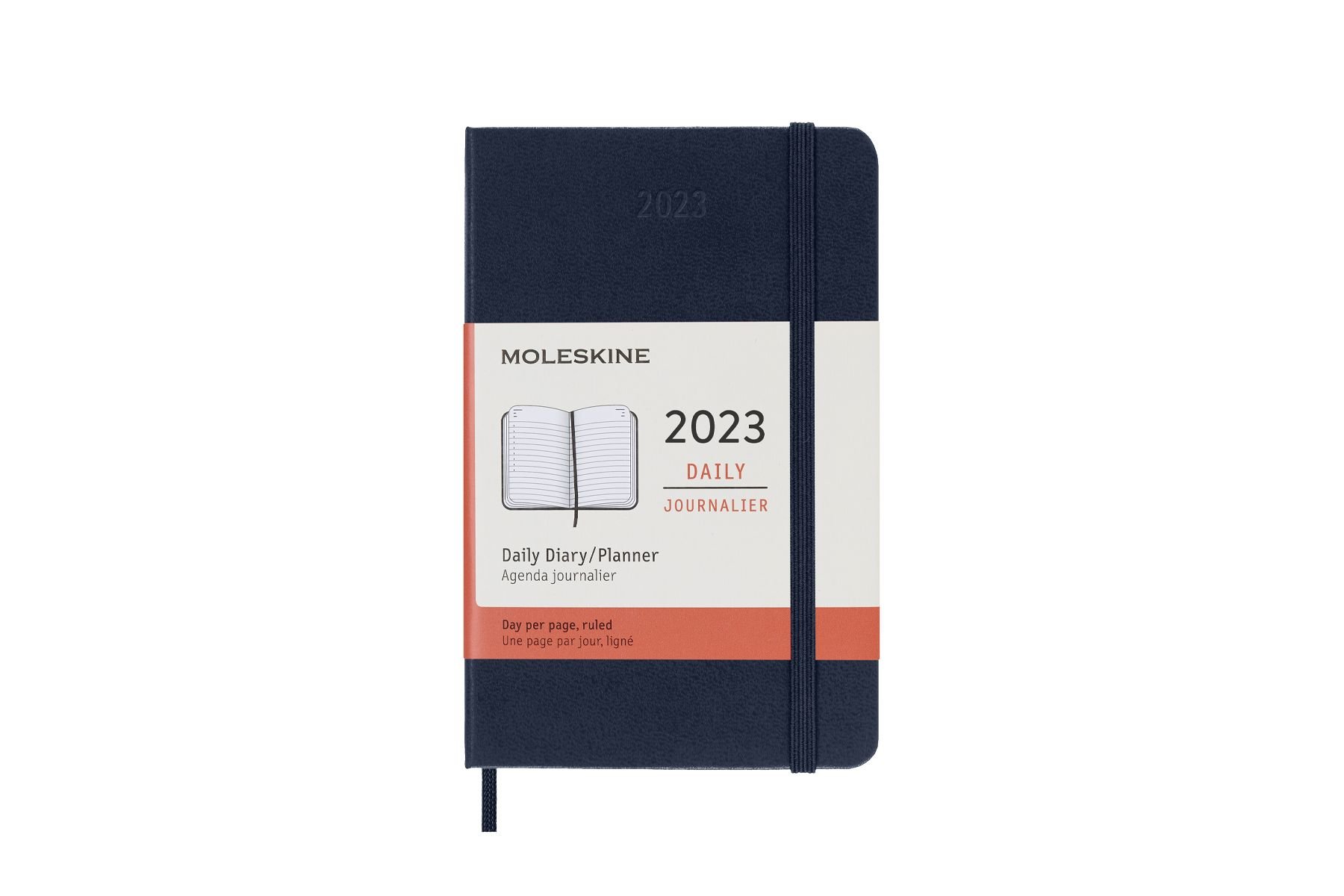 Klasický modrý denní diář kapesní velikosti na rok 2023. Na každý den stránka pro poznámky a schůzky. Diář má pevnou, ve hřbetu šitou vazbu v kartonových deskách. Obepíná ho pružná páska proti samovolnému otevírání. Obsahuje praktickou vnitřní kapsu na vizitky a dokumenty, textilní záložku a 295 barevných samolepek. Papír s gramáží 70 g/m2 neobsahuje kyseliny.