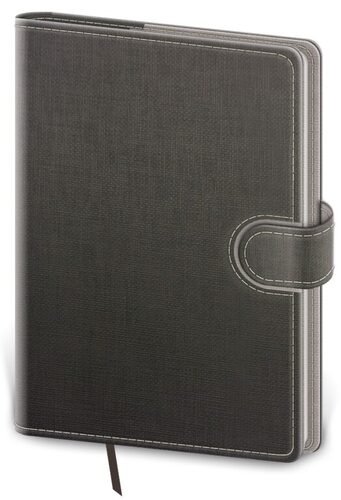 Diář Flip </br> Jde o moderní typ diářů s vyměnitelnými deskami a variabilním obsahem. Praktické desky jsou vybaveny poutkem na tužku, magnetickou uzavírací klopou a jejich okraj zdobí obšití nití. Desky je možno použít opakovaně pro zápisníky i diáře, proto neobsahují ražbu letopočtu. Kvalitní koženka umožňuje dosáhnout vynikajících výsledků sleporažby bez fólie. </br></br> Diář obsahuje: osobní údaje, plánovač dovolené (měsíční přehled), plánovací kalendář, telefonní předvolby, státní svátky České a Slovenské republiky, mezinárodní svátky, roční výhled, denní layout, adresář, mapa Evropy a České a Slovenské republiky </br></br> <strong>Do diáře FLIP lze přidat poznámkový blok.</strong> Stačí si vybrat jednu z náhradních náplní, kterou lze jednoduše do desek doplnit. S oblíbenými deskami FLIP se uživatel nemusí loučit ani v příštím roce. Připravíme opět náhradní náplně pro denní a týdenní diáře.Formát diáře: 120 x 165 mm </br> Rozsah diáře: 336 stran </br> Kalendárium: denní </br> + poutko na tužku </br> + možnost dokoupit si náhradní náplň