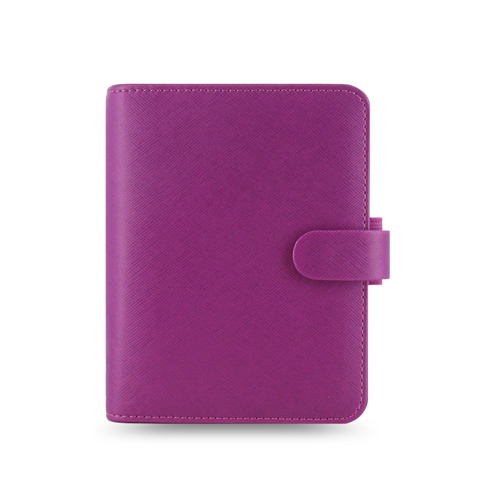 Diář kapesní, v klasickém vzhledu se strukturovaným povrchem desek z umělé kůže, s 6- kroužkovou mechanikou průměru 19mm. Diář obsahuje dvoustránkový týdenní kalendář linkovaný se svátky, v SJ i ČJ, pravítko / záložku, okrajové výřezy, bílý i barevný papír, adresář. Levá vnitřní strana desek je vybavena 2 přihrádkami na vizitky, pravá vnitřní strana přihrádkou na poznámkový blok. Součástí je elastické poutko na pero v barvě diáře. Zapínání na patentku. Materiál: syntetické vlákno.