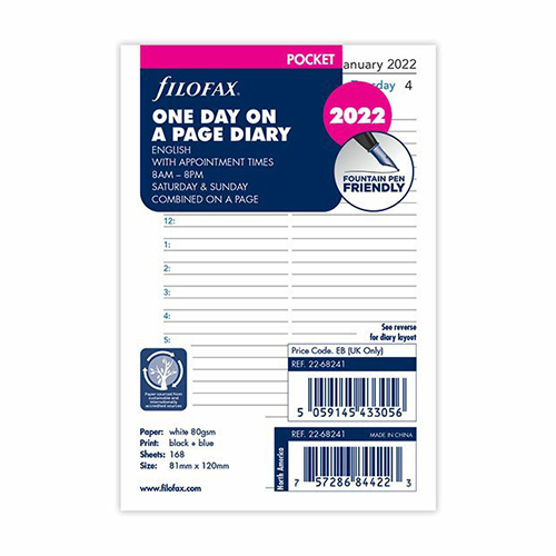 Náplň do diára Filofax 2022, vrecková/denná ENG