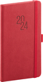 Luxusní kapesní diář Diamante 2024 v klasicky červené barvě. Povrch s jemnou strukturou připomínající výbrus diamantu je vhodný pro všechny typy ražeb. Diář má zakulacené rohy, poutko na tužku a elastickou gumičku, sloužící k pevnému uzavření.