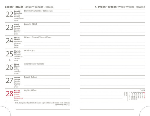 Diář 2024 Náhradní náplň diář A6 S - 436 týdenní
