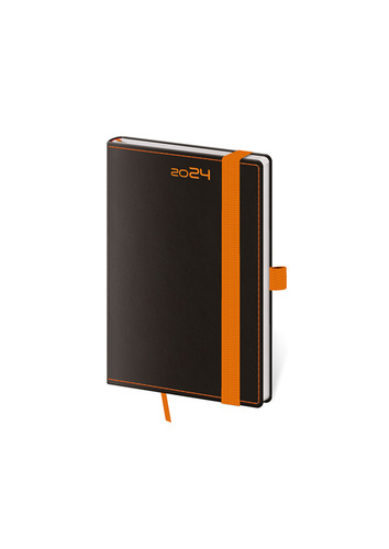 Diář 2024 týdenní kapesní Black Orange s poutkem na propisku