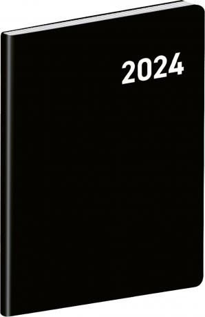 Diář 2024 - Černý, plánovací měsíční, kapesní, 7 x 10 cm
