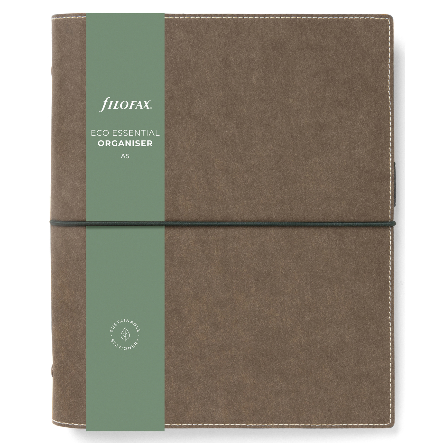 Vychutnejte si uvědomělý život s pomocí tohoto diáře A5 z kolekce Eco Essential. Tento udržitelný diář má desky z veganského materiálu ze 100% celulózových vláken a Eco náplň s kalendářem týden na 2 strany vytištěný sójovým inkoustem na recyklovaném papíru s certifikací pro zodpovědný původ dřeva. Řada udržitelných papírenských potřeb.